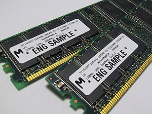 DDR与SDRAM的另一个区别是工作电压:DDR内存条的工作电压只有2.5V,大大小于SDRAM的3.3V。这种低电压设计有利于减少发热量、减少电能消耗,从而也利于笔记本电脑使用。 当然,DDRAM与SDRAM的最大区别还是技术方面的,DDRAM可以在时钟前后沿采样,而SDRAM只使用了时钟脉冲的一个沿,所以,虽然DDR266 DDRAM与PC133 SDRAM时钟频率一样,但是DDR传输率却是SDRAM的2倍。 下面,我们将对DDRAM、SDRAM内存带宽做一个比较测试,测试采用了StreamD(内存带宽测试程序)。StreamD是一个DOS程序,测试项目包括:COPY32, COPY64, SCALE, ADD 和 TRIAD,测试结果如下: StreamD - 内存带宽测试(单位:MB/s) | 内存规格 / CL | COPY32 | COPY64 | SCALE | ADD | TRIAD | PC-100 / CL=3 | 274.91 | 274.09 | 276.10 | 311.59 | 312.70 | PC-100 / CL=2 | 286.23 | 287.77 | 288.42 | 327.87 | 329.22 | PC-133 / CL=3 | 368.66 | 369.94 | 372.31 | 417.21 | 417.03 | PC-133 / CL=2 | 387.17 | 385.77 | 388.35 | 438.16 | 439.16 | PC-2100 / CL=2.5 | 549.83 | 562.88 | 851.06 | 808.76 | 737.33 | 很明显,PC2100的带宽基本上是PC100 CL=2的2倍,是PC133 CL=2的约1.4倍,从这个结果看,DDR能帮助提高系统性能是非常明显的。正是为了考察系统性能的改善问题,下面我们使用AMD 1.2G系统进行测试,测试软件选择为Winstone2000、3DMark2000,请看下面的测试结果: 1、Winstone2000 测试项目 | 得分 | 排名 | 雷鸟1.2G + DDR266 | 45.9 | 1 | 雷鸟1.2G + PC133 | 44.4 | 2 | 雷鸟1.2G + PC100 | 43.8 | 3 | 2、3DMark 2000 (800*600,32位色) 测试项目 | 得分 | 排名 | 雷鸟1.2G + DDR266 | 5570 | 1 | 雷鸟1.2G + PC133 | 5550 | 2 | 雷鸟1.2G + PC100 | 5525 | 3 | (耿言 02-08编译)